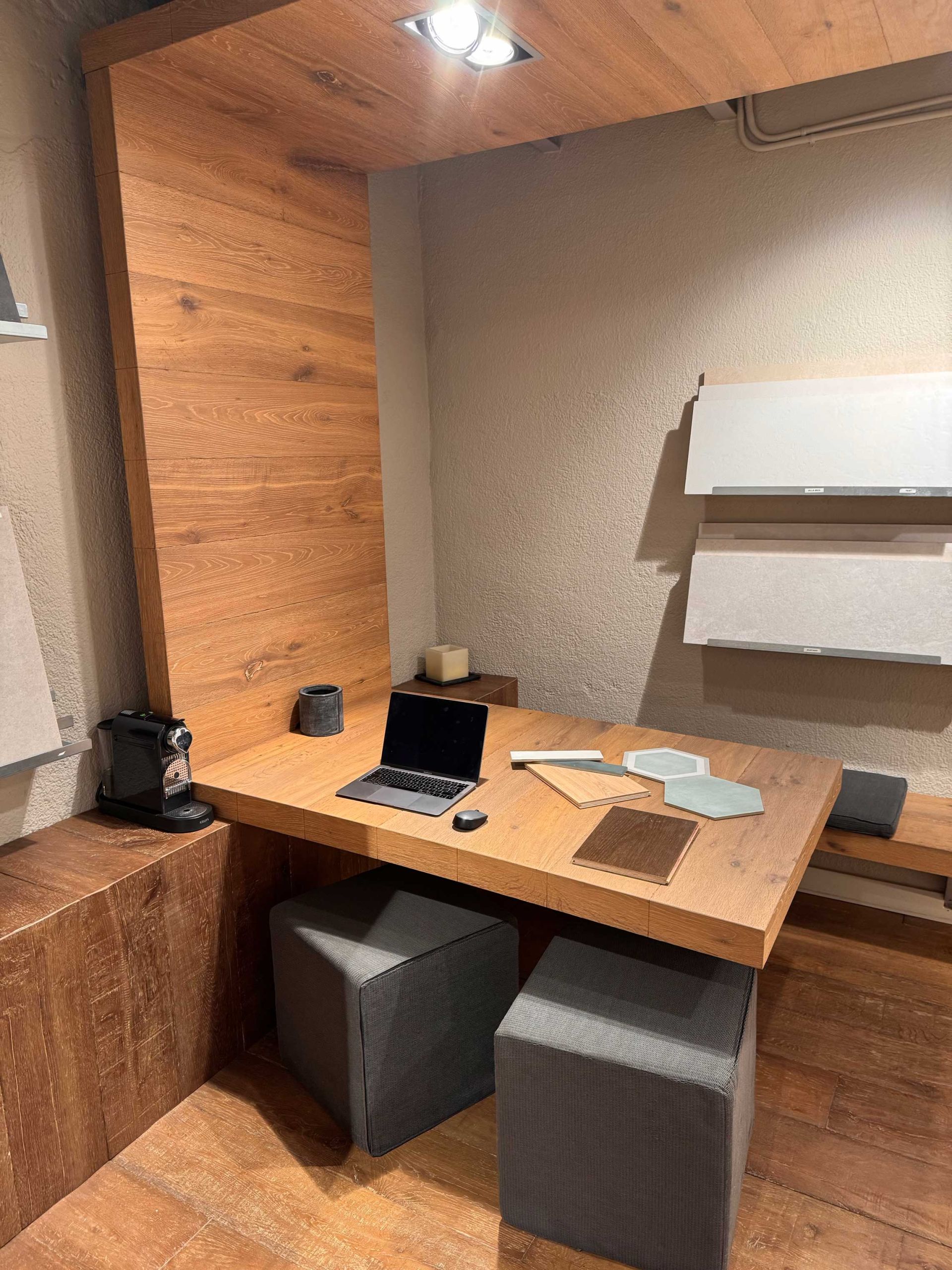 Nuestro showroom de Barcelona es un entorno de trabajo exclusivo para arquitectos e interioristas. Es la fase esencial del proyecto: el lugar donde el diseño se encuentra con la viabilidad técnica. Aquí, la excelencia de nuestros pavimentos y revestimientos puede ser examinada y certificada junto a sus clientes, con el soporte de nuestro equipo técnico, para que pueda cerrar sus proyectos sin distracciones.